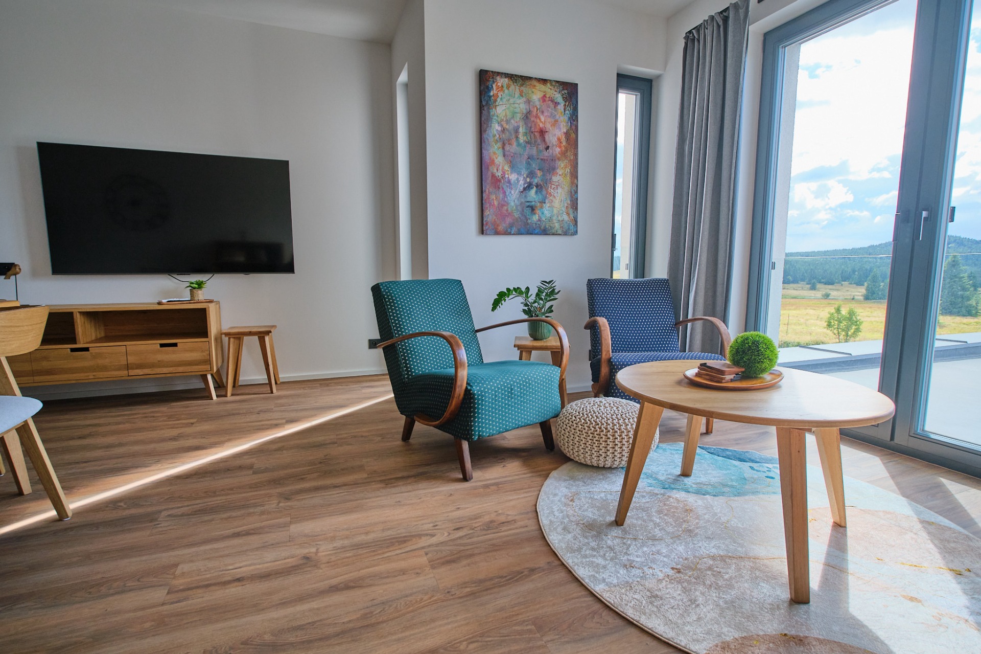 ,,Skvěle vybavený apartmán, vkusně zařízený, velmi prostorný s citem pro detaily. Krásný výhled do krajiny, apartmán je na kraji obce. Výborně vybavená kuchyně. Ocenili jsme pohodlné odemykání a ovládání všeho, pohodlnou garáž. Příjemný a ochotný majitel."